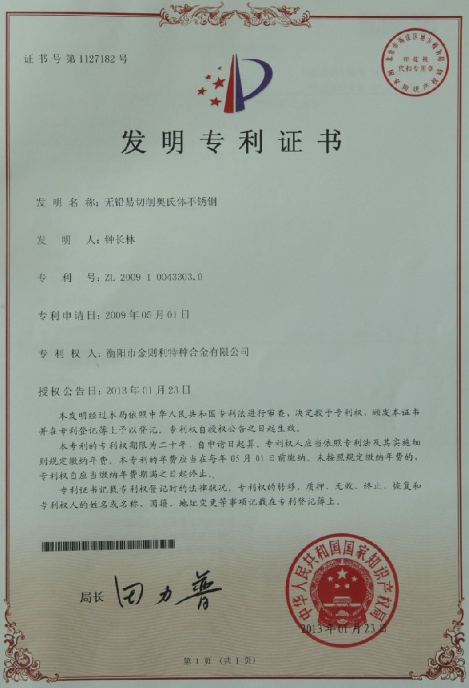 衡阳市金则利特种合金股份有限公司成立于一九九九年十二月,注册资本人民币两千两百万元。注册地址:衡阳市雁峰区白沙洲工业园长塘路2号。公司主营耐蚀软磁合金,为湖南省高新技术企业。公司自成立以来,即致力于耐蚀软磁合金的研发。 研制出的JL-31(00Cr13si2Pb)、JL-31B(00Cr13si2)、JL-31BS(00Cr13Si2S)、JL-37B(0Cr17Si2)、JL-37(0Cr17···